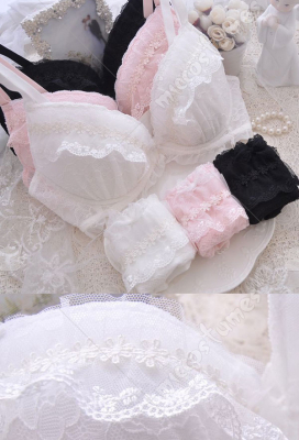Women Sweet Maid Style Cute Lace Decorated Lingerie Set