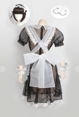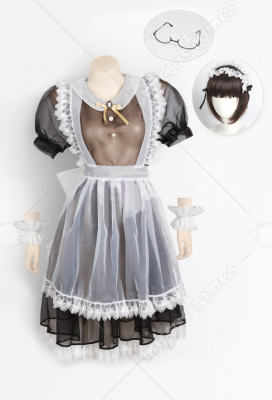 Women Transparent Short Lace Ruffle Maid Outfit Cosplay Costume Outfit with Maid Hat And Glasses Frames