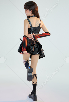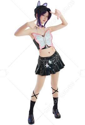 Women Two Piece Outfits Party Clubwear Punk Style Butterfly Shaped Halter Top and Mini Skirt Set with Waist Chain and Socks