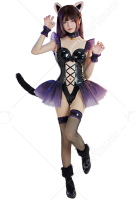 Yuuka Sorai Cat Ears Ver Cosplay Costume Catgirl Outfits Hollow Bodysuit with Tail Stockings