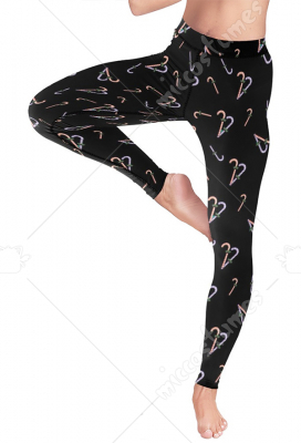 Christmas Women Adults Cartoon Walking Stick Pattern Print High Waist Yoga Leggings Workout Running Pants Sportswear