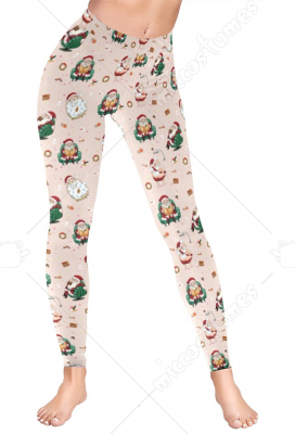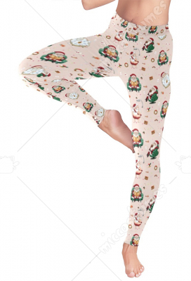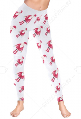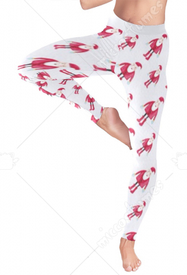 Christmas Women Adults Cartoon White Santa Claus Pattern Print High Waist Yoga Leggings Workout Running Pants Sportswear