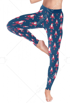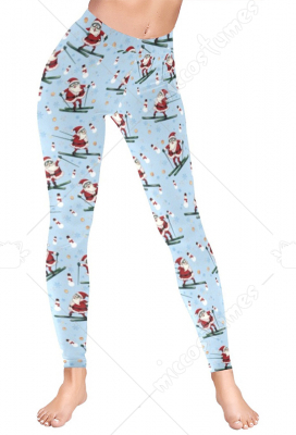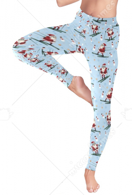 Christmas Women Adults Cartoon Sledding Santa Claus Pattern Print High Waist Yoga Leggings Workout Running Pants Sportswear