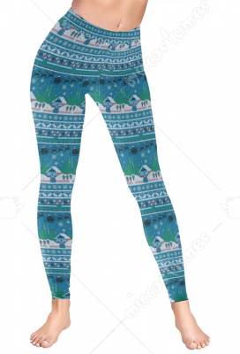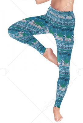 Christmas Women Adults Cartoon Snow House Pattern Print High Waist Yoga Leggings Workout Running Pants Sportswear