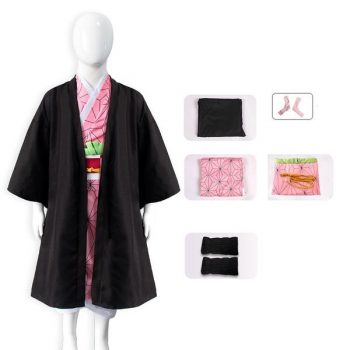 Kids Anime Demon Slayer Kamado Nezuko Cosplay Costume Full Set With Wigs ans Shoes