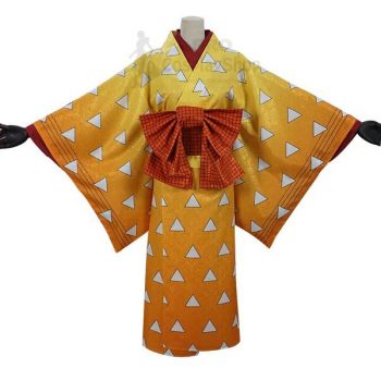 Anime Demon Slayer/Kimetsu No Yaiba Agatsuma Zenitsu Female Version Kimono Cospaly Costume Full Set