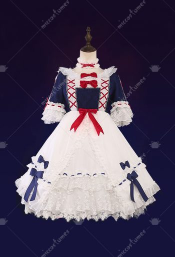 Cardcaptor Sakura Tomoyo Daidouji Cosplay Costume Sweet Lolita Cute Bowknot Lace Chiffon Ruffle Snow White Lolita Dress