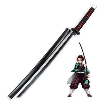 Anime Demon Slayer Tanjirou Kamado Cosplay Props Black Sword Wooden
