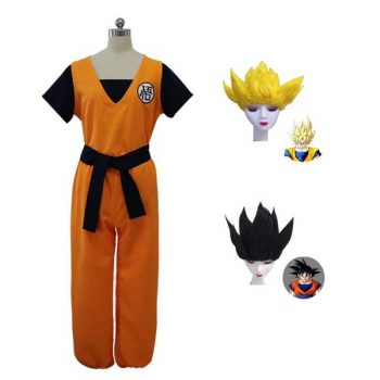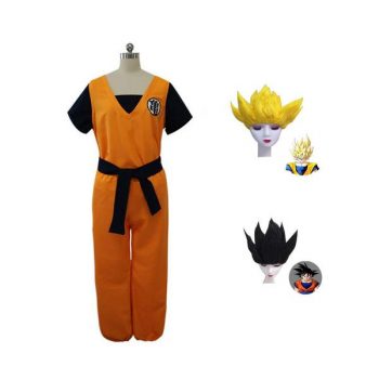 Anime Dragon Ball Adults Son Goku Yellow Cosplay Costume Suit With Wigs
