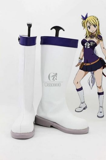 “Fairy Tail Anime Lucy Heartfilia Cosplay Shoes White Boots”