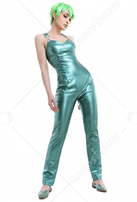 Sold Out JoJos Stone Ocean Prison Foo Fighters Elastic Long Light Green Shiny Leather Rompers Pants Outfit Cosplay Costume