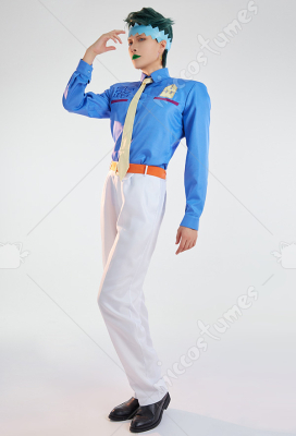 JoJo's Bizarre Adventure Diamond Is Unbreakable Rohan Kishibe Cosplay Costume Blue Shirt and Trousers with Accessories