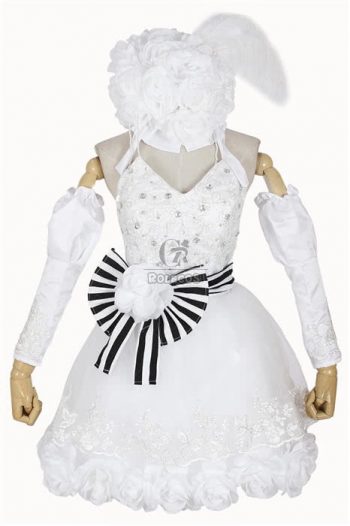 Black Butler The Princess of Circus Doll White Dress Cosplay Costume with Roses Hat