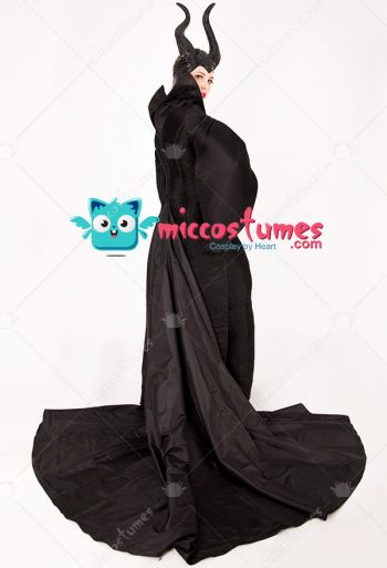 Exclusive Female Halloween Cosplay Costume Gown Dress with Headgear Inspired by Maleficent