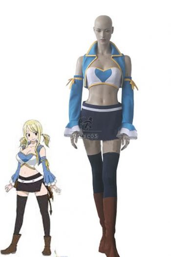 Fairy Tail Lucy Heartfilia Cosplay Costume Uniform Full Set With Boots and Wigs