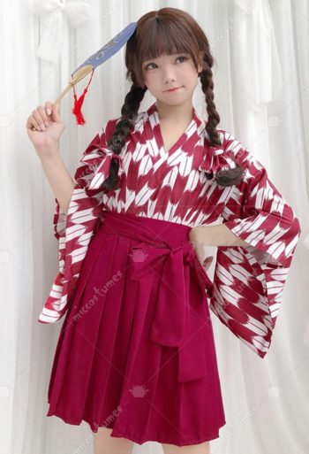Japanese Kimono Yukata Arrow Printing Haori Pleated Skirt