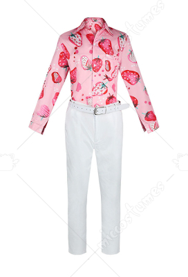 Spy House Loid Twilight Cosplay Costume Pink Strawberry Shirt and White Pants with Belt