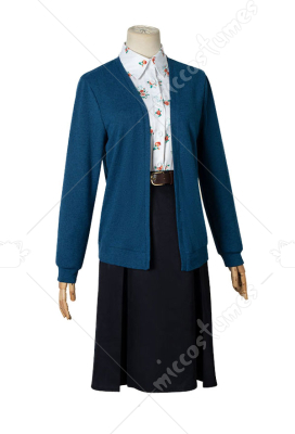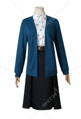 Spy House Yor Cosplay Costume Floral Shirt and Skirt with Blue Cardigan Casual Outfit