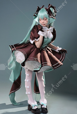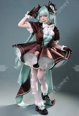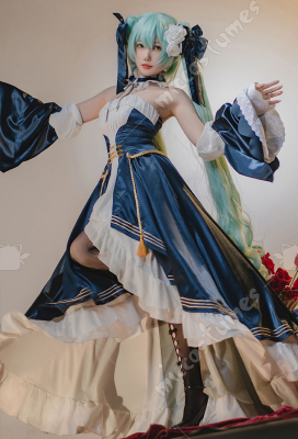 Vocal Cosplay Costume Dress and Sleeves with Hairpins and Thigh Socks