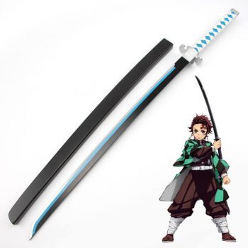 Anime Demon Slayer Tanjirou Kamado Cosplay Props Blue Sword Wooden