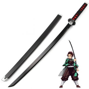 Anime Demon Slayer Tanjirou Kamado Cosplay Props Black Sword Wooden