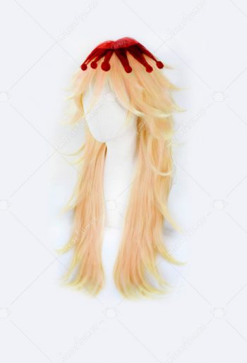 Demon Slayer Kimetsu no Yaiba Doma Long Curly Golden Cosplay Wig with Blood Pattern