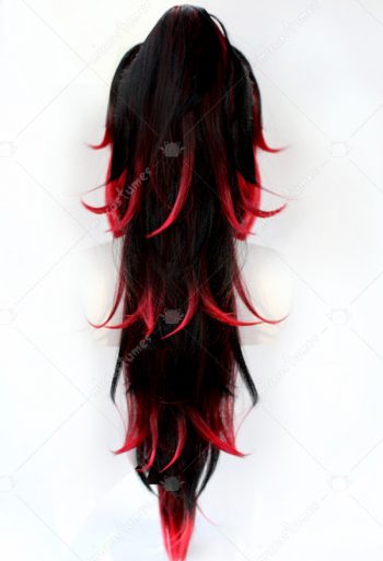 Demon Slayer Kimetsu no Yaiba Tsugikuni Yoriichi Long Curly Red Black Gradient Ponytail Cosplay Wig