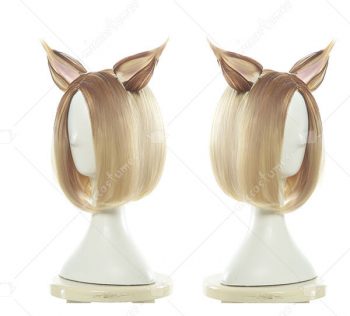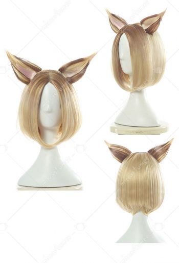 League of Legends Cosplay KDA Ahri Prestige Edition Cosplay Wig Fake Ears Gold Bob Wig