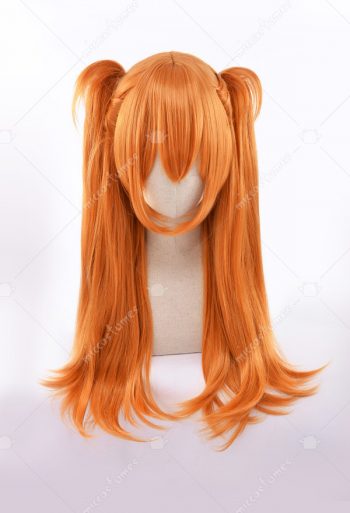 Neon Genesis Evangelion Asuka Langley Soryu Cosplay Wig Layered Orange Slight Curly Long Wig With Double Ponytail