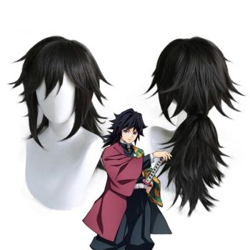 Demon Slayer Kimetsu no Yaiba Tomioka Giyuu Cosplay Wigs Ponytail Black Hair cp05675