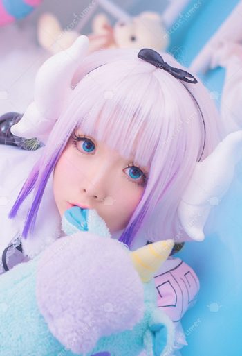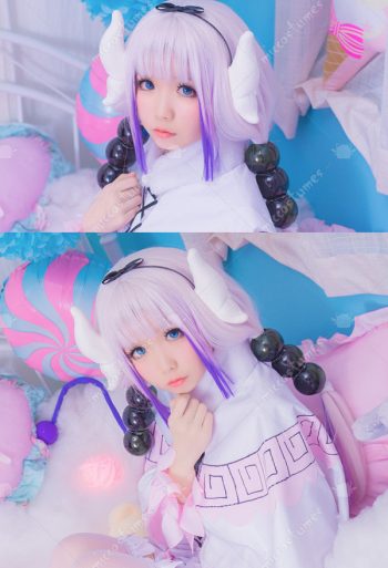 Miss Kobayashis Dragon Maid Kanna Kamui Cosplay Wig with Accessories
