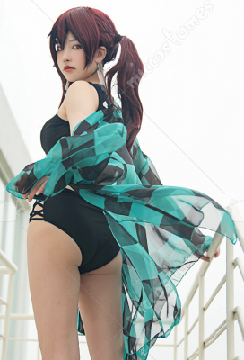 KNY Giyuu Vest and Shorts Set Two-Piece Swimming Suit Bathing Suit Beach Swimsuit Outfit Cosplay Costume with Haori Kimono Cover-Up