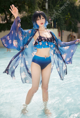 KNY Hashibira Ruffled Cartoon Pattern One-Piece Zentai Bodysuit Swimming Suit Bathing Suit Beach Swimsuit Outfit Cosplay Costume