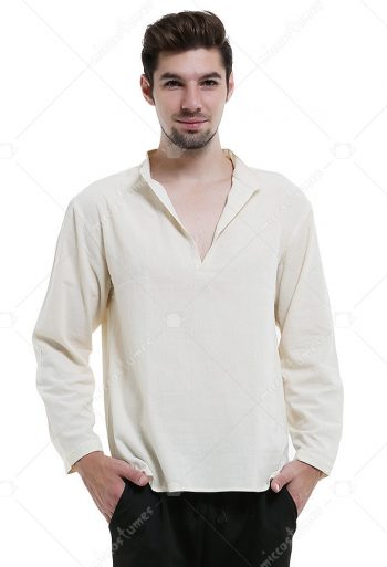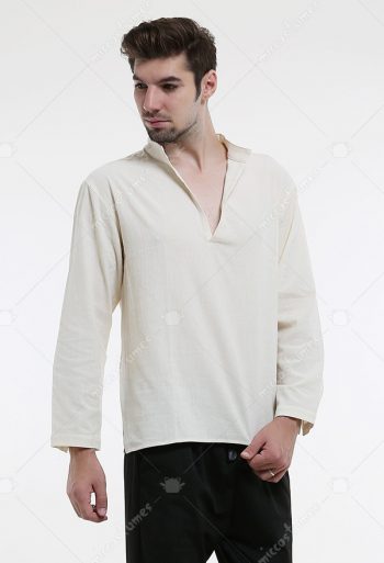 Mens Renaissance Medieval Linen Shirt V Neck Long Sleeve Pirate Top