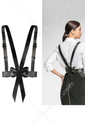 Gothic Women Cute Suspender Waist Belt Faux Leather Bowknot Punk Fashion Body Harness Belt Cross Waist Accessory