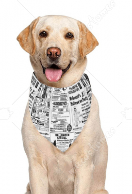 Halloween Newspaper Pattern Pet Bandana Triangle Double Sided Digital Printing Pet Bibs Scarf Washable Pet Kerchief for Dog Cat
