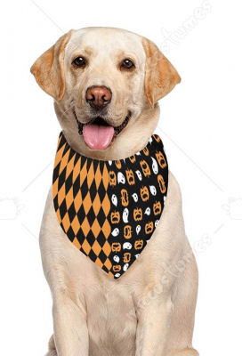 Halloween Pumpkin Diamond Stitching Pattern Pet Bandana Triangle Double Sided Digital Printing Pet Bibs Scarf Washable Pet Kerchief for Dog Cat