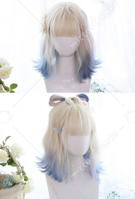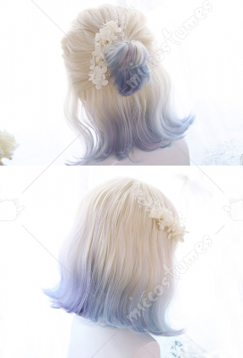 Halloween Lolita Gradient Cosplay Wig Harajuku Dyeing White and Ice Blue Mixed Color Short Everted Wig