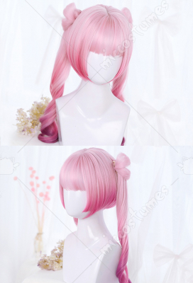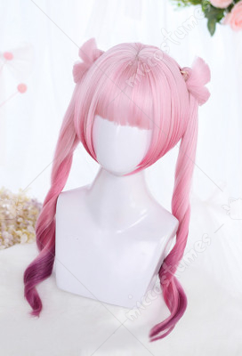 Halloween Lolita Gradient Cosplay Wig Harajuku Dyeing Peach Pink Mixed Color Long Wavy Curly Wig with Double Ponytails