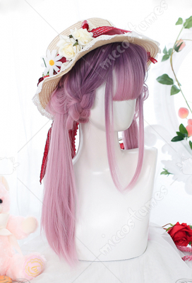 Halloween Lolita Gradient Cosplay Wig Harajuku Dyeing Pink Purple Mixed Color Long Straight Wig