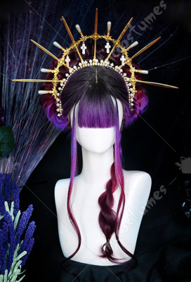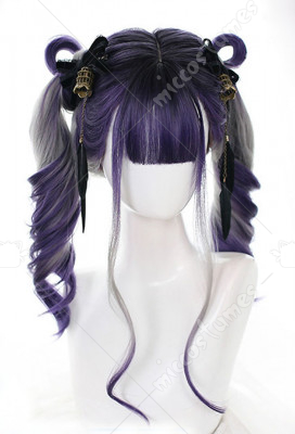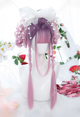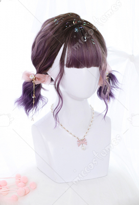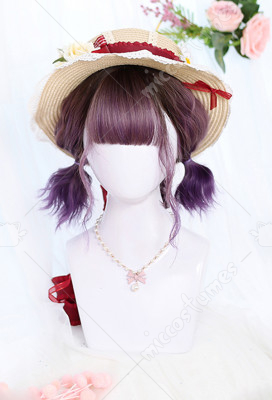 Halloween Lolita Gradient Cosplay Wig Harajuku Purple Mixed Color Short Curly Ponytail Wig