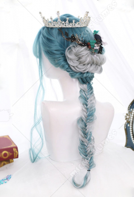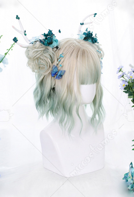 Halloween Lolita Gradient Cosplay Wig Harajuku Dyeing White and Green Mixed Color Long Wavy Curly Wig
