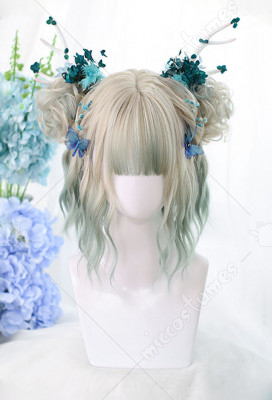 Halloween Lolita Gradient Cosplay Wig Harajuku Dyeing Tea Green Mixed Color Long Wavy Curly Wig