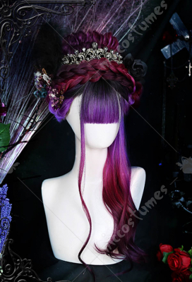 Halloween Lolita Gradient Cosplay Wig Harajuku Rose Red and Purple Mixed Color Long Wavy Curly Wig
