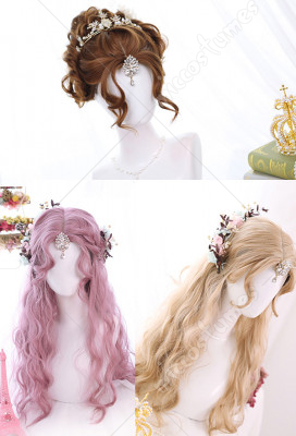 Halloween Lolita Gradient Cosplay Wig Harajuku Pink Mixed Color Long Wave Curly Wig for Party