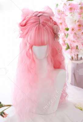 Halloween Lolita Gradient Cosplay Wig Harajuku Dyeing Pink Sheep Roll Long Wavy Curly Wig