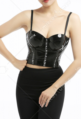 Women Leather Corset Buckle Design Push Up Corset Underbust Waist Cincher Halter Shoulder Straps Bustier Top