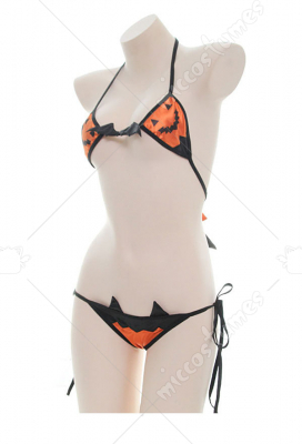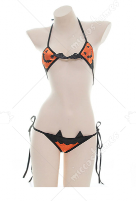Women Sexy Halloween Pumpkin Two Piece Bikini Set