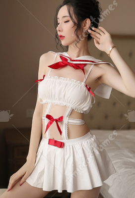 Women Sexy Hollow Out Falbala Sailor Suit Japanese Pleated Skirt Lace Bowknot Decorated Lingerie Set