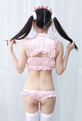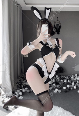 Women Sexy Hollowed Bunny Girl Ruffled Bodysuit Set with Headdress